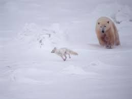 The Arctic fox follows Polar bears around because after a polar bear kills they get the left overs.
